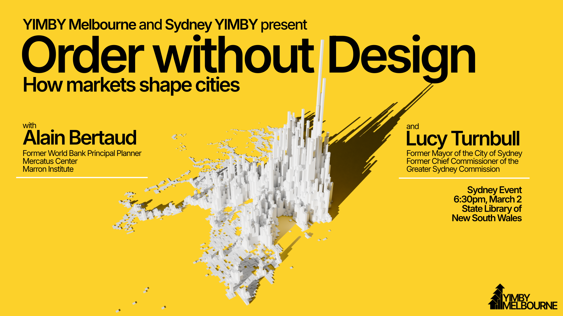 Join Alain Bertaud, former Principal Planner at the World Bank and author of Order without Design: how markets shape cities, for an insightful evening exploring how this intersection between policy and markets can be made to work on behalf of all Australians.