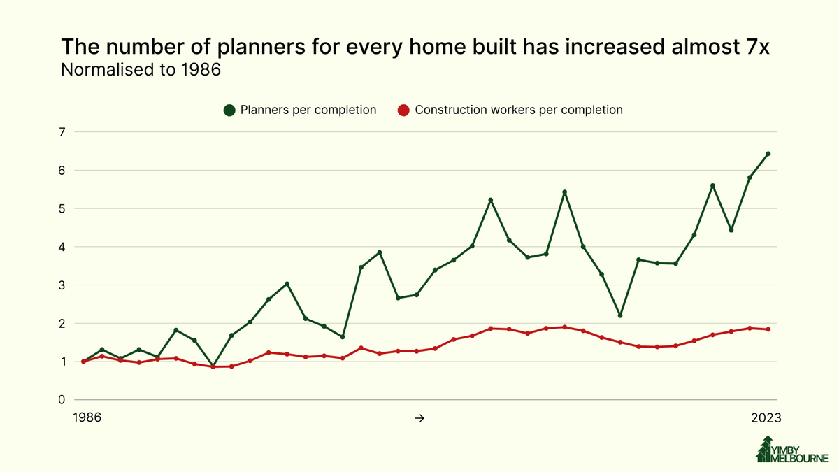 This isn't a supply problem—it's a demand crisis driven by byzantine planning rules that require ever more planners to process ever fewer homes.